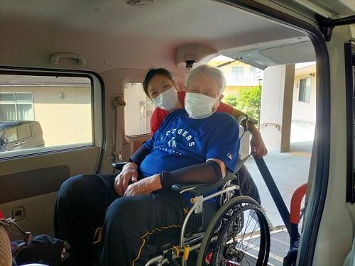 田園風景が広がる私たちの地域では、道幅が非常に狭い場所が多くありますが、エブリイワゴンなら、どんな場所にでも安心してアクセスすることができます。また、車内空間が広いので、リクライニング車いすを乗せることができ、ウインチも簡単操作で安心して送迎できます。 利用者様の中に、鈴木道雄さんを知っている方がいました。本当にありがとうございました。